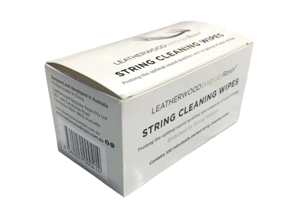 Samostatně balené čisticí hadříky Leatherwood Bespoke String Cleaning Wipes pomáhají prodloužit životnost a zvukovou kvalitu strun. Odstraňují nečistoty, mastnotu a pot, které výrazně tlumí vibrace a alikvotní tóny. Obsahují 99% isopropylalkohol.