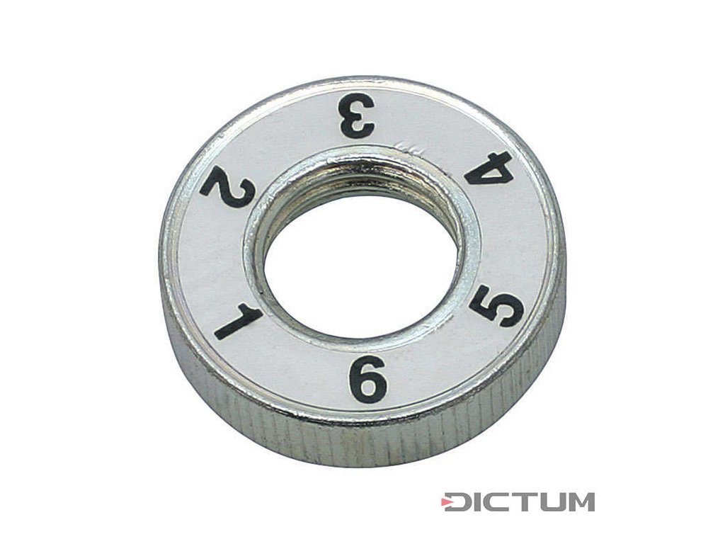 Měrka pro nastavení úhlu broušení, průměru brusného kotouče a měření stávajícího úhlu ostří.